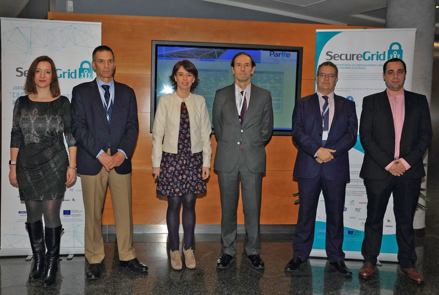 Elena Matilla (CISO-Responsable de la gestión y gobierno de la ciberseguridad de Red Eléctrica de España), Juan Miguel González (responsable de Telecontrol, ENDESA Distribución), Estíbaliz Hernáez (Gobierno Vasco), José Ignacio Hormaeche (gerente, Cluster de Energía), José Corera (responsable de Sistemas de Control, IBERDROLA Distribución Eléctrica) y Asier Martínez (head of CSIRT Services del Centro Vasco de Ciberseguridad, BCSC).