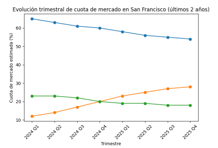Desde el despliegue comercial en San Francisco de Waymo, un servicio de taxis robotizados desarrollado por Alphabet-Google, la dinámica del mercado de la movilidad urbana ha cambiado. Esta plataforma aporta conducción totalmente sin conductor y se está comiendo a sus competidores que hasta hace días eran disruptivos como Uber o Lyft. La ciudad de California es un escenario ideal para observar lo que pronto va a ocurrir en otros puntos del mundo, a medida que los conocidos como «robotaxis» sean plenamente legales.