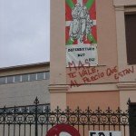 Simpática pintada en la fachada del batzoki del PNV de Algorta. El texto del cartel oficial recoge en euskera un verso de Gabriel Aresti: «Defenderé la casa de mi padre». La pintada reza: «Más te vale al precio que están».